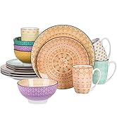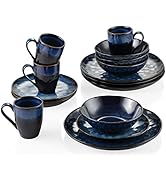 The vancasso Aqua Blue Dinner Set is an 11-piece stoneware collection featuring irregular oval shapes and a unique turquoise cracked glaze inspired by Mediterranean aesthetics. Fired at high temperatures, this durable ceramic set is resistant to chips, cracks, and scratches, and is safe for microwave, dishwasher, and freezer use. Designed for both everyday use and special occasions, it includes a serving platter, dessert plates, bowls, and saucers, combining rustic vintage style with practical modern functionality.