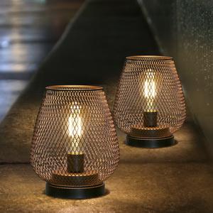 The JHY DESIGN Set of 2 Metal Cage LED Lanterns offers a vintage-inspired, battery-powered lighting solution with warm white LED bulbs. Crafted from durable metal with a black and gold finish, these compact 6.7" tall lanterns provide cordless, soft ambient light ideal for indoor settings like weddings, parties, or office décor. Lightweight and portable, they require 3 AAA batteries each (not included) and feature a slide switch for easy control.