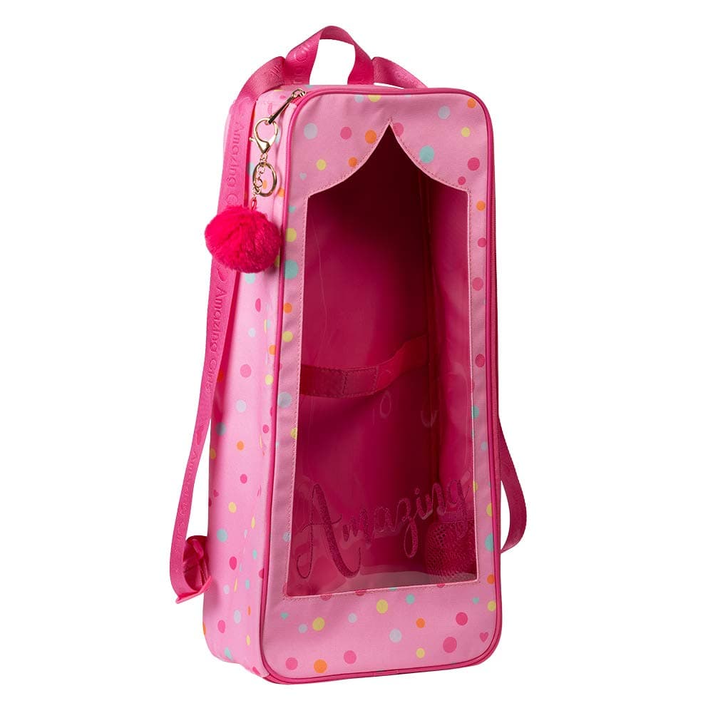 This carrier is great. I like its cute window, it looks like a whimsical little tent. It’s also nice that you can see the whole doll, that’s nice for travel and car rides. Feels sturdy, and there’s a good amount of room inside to stash extra accessories. We keep little doll things in the inner side pockets, and clothes in a flat zippered accessory-type pouch that fits nice laying down against the back of the carrier, with dolly on top. I’m considering buying a second one, we like this one so much.