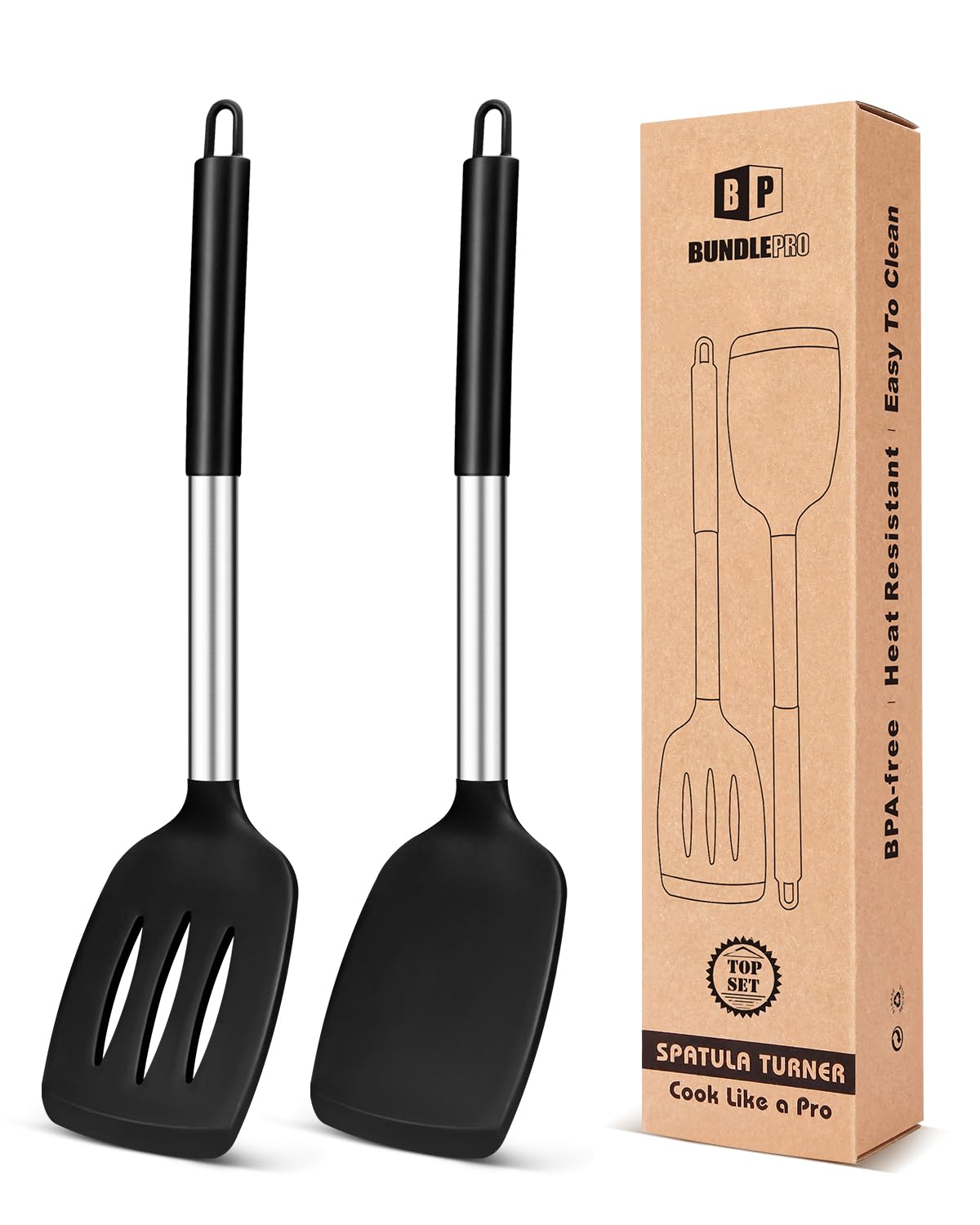 These silicone spatulas are a top-notch addition to any kitchen setup, especially if you use non-stick pans. 🔹 Safe and Durable Materials Made from food-grade silicone with stainless steel handles, these spatulas are BPA-free, heat resistant, and safe for use with all cookware types. As shown in the product diagram on page 3, the edges are flexible and non-scratch, making them ideal for flipping and stirring without damaging your pans. 🔹 Great Design and Practicality The set includes a solid turner and a slotted turner, both with ergonomic silicone handles that provide a secure grip and remain cool even when cooking over high heat. The product detail section on page 1 confirms dimensions of 13.58” x 3.25”, which offer ample surface area for flipping eggs, pancakes, or fish. ✅ Pros: Non-scratch edges for non-stick cookware Comfortable silicone grip and stainless steel core Heat resistant and BPA-free Easy to clean, dishwasher safe Excellent value for a 2-piece set ❌ Cons: None noted Overall: A 5-star product that delivers on quality, comfort, and practicality. Highly recommended for any home chef who wants safe, reliable spatulas that last.