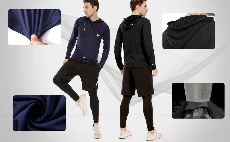 MEETYOOMen’s Running Tops, Sport Shirt Long Sleeve T-shirt Gym Tee for Fitness Workout Jogging