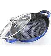 This 32cm griddle pan features a premium German Greblon ceramic non-stick coating on lightweight cast aluminum, compatible with all heat sources including induction and oven-safe up to 260°C. It includes a durable ovenproof glass lid and removable silicone handles for safe, versatile cooking. Dishwasher safe and backed by a 2-year warranty, it’s designed for effortless grilling and lasting performance.