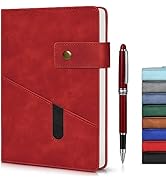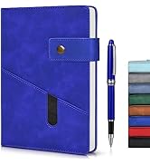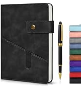 This A5 Lined Leather Journal Notebook features 200 pages of premium 100gsm thick, ink-proof ruled paper housed in a soft faux leather hardcover. Designed for professionals and creatives alike, it includes a gusseted pocket with metal buckle for secure storage, a luxury metal pen, and elegant gift box packaging. Perfectly sized at 5.9" x 8.4", it combines style, durability, and functionality for everyday use in business, school, or travel.