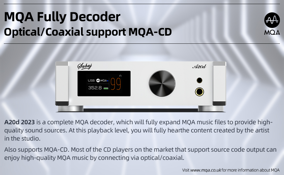The SABAJ A20d 2023 Version is a cutting-edge decoding and ear amplifier machine featuring the flagship AK4499X and AK4191EQ chips, delivering ultra-low distortion and high-resolution audio support. With Bluetooth 5.0 connectivity and a robust aluminum design, it combines style and performance for the modern audiophile.