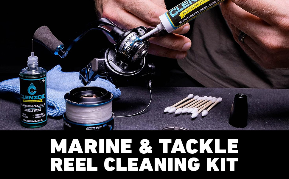 The CLENZOIL Marine & Tackle Fishing Reel Oil Kit is a comprehensive maintenance solution featuring a 1 oz needle oiler, 0.5 oz grease syringe, pump sprayer, cotton swabs, and microfiber cloth. Designed for both freshwater and saltwater reels, it delivers precise lubrication and rust prevention in a compact, veteran-owned package.
