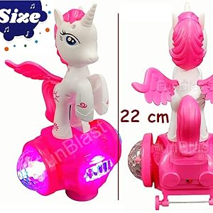 The FunBlast Musical Unicorn Toy is a 22 cm tall, multicolor plastic dancing unicorn designed for kids aged 3 and up. Featuring 360-degree rotation, vibrant 5D light and music effects, and bump-and-go interactive movement, it offers an engaging sensory play experience. Lightweight at 275g and requiring 3 AA batteries (not included), this no-assembly toy is a perfect gift to inspire fun and creativity.
