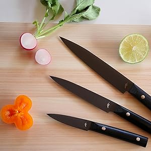 - ERGONOMIC ELEGANCE - Black Pakkawood handles resist moisture and provide a silky, natural grip with a chestnut-shaped end for ultimate comfort.