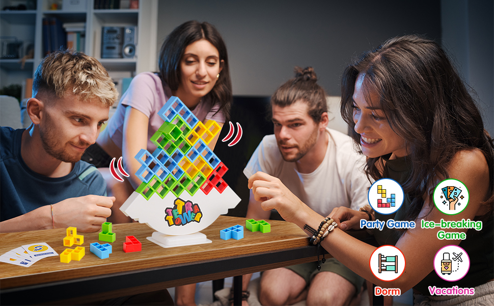 The 32 Pcs Tetra Tower Game is a multicolor, ABS plastic stacking block set designed for ages 3 and up. Featuring 32 smooth-edged pieces in four vibrant colors, it promotes hand-eye coordination, concentration, and logical thinking. Perfect for family fun, team-building events, or solo play, this durable and portable game offers endless entertainment without the mess or risk of paint damage.