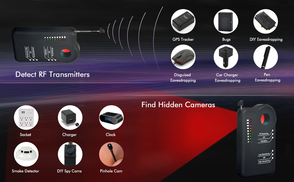 The TERRIFI Hidden Camera Detector is a professional-grade anti-spy device designed to identify and neutralize surveillance threats. With advanced detection capabilities ranging from 1 MHz to 10 GHz, it effectively locates both active and inactive hidden cameras, bugs, and GPS trackers. Its compact design and rechargeable battery make it ideal for use in various environments, ensuring your privacy is safeguarded whether at home, in the office, or while traveling.