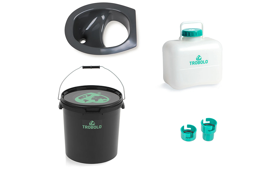 The TROBOLO DIY Composting Toilet Set is a versatile, odorless, and hygienic urine-diverting dry toilet solution featuring a 2.9-gallon solids container and 2.6-gallon liquids container. Designed for easy assembly and compatibility with standard toilet seats, it requires no water, chemicals, or electricity, making it perfect for sustainable living, camping, and off-grid environments.