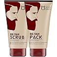 The Qraa Men De Tan Pack is a dual-action scrub and pack designed specifically for men's tough skin. It effectively removes sun tan, blackheads, and dirt while providing skin lightening and brightening benefits. Enriched with potent ingredients and three nourishing oils, this product ensures gentle exfoliation and deep hydration, making it a must-have for any modern man looking to revitalize his skin.
