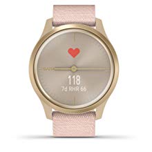 The Garmin Vivomove Style is a hybrid smartwatch combining traditional analogue watch hands with a hidden dual AMOLED touchscreen. Featuring durable Corning Gorilla Glass and a lightweight aluminium case, it offers smart notifications, Garmin Pay contactless payments, and accurate GPS tracking for multiple fitness activities, all wrapped in a chic blush pink nylon band.