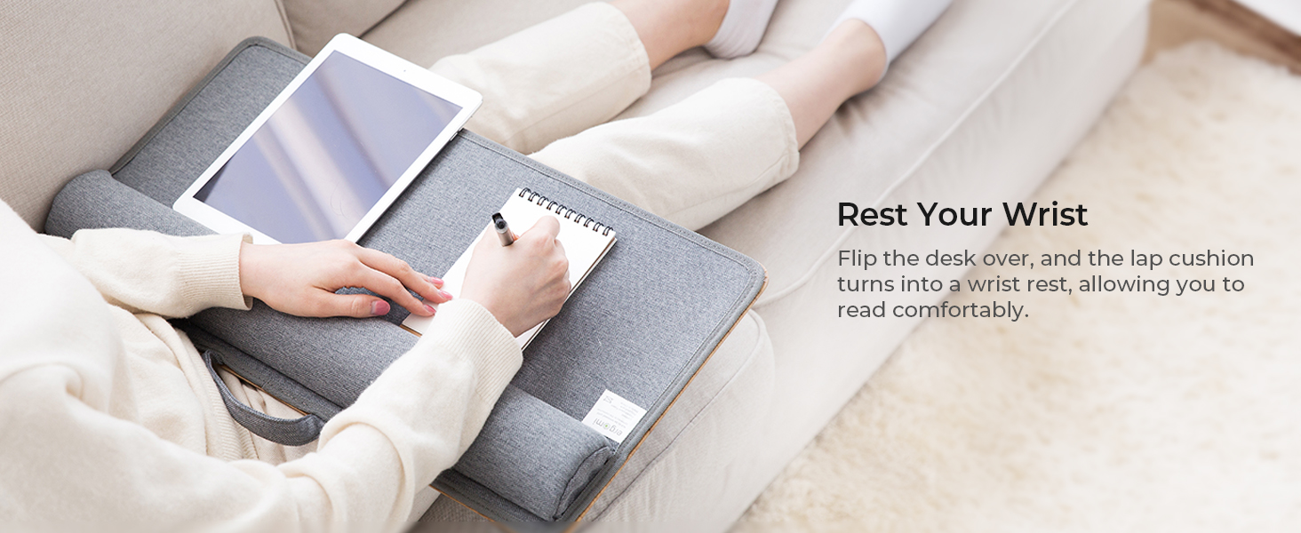 The ergomi Portable Lapdesk is a versatile and comfortable solution for working, reading, or writing from anywhere. With a soft cushion, built-in wrist support, and a lightweight design, it fits laptops up to 16 inches and offers a secure, anti-slip surface for all your tasks.