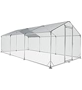 So far we absolutely love the size and much of the design of this chicken run. It is quite large (carport size) and easily allows 12 chickens to fly and roam around freely while also allowing space for a full size kids swing, feed dishes, climbing logs, a pool step ladder, a kiddie turtle sand box, & a large dog crate for shelter when the chicken are not in the coop. Easy to assemble. Comes with a small tarp. Decent value for $ spent. One major downside though is the pointy door latch. It is sharp and is hard to maneuver. I have caught my clothing or arm on multiple times, therefore I will be looking for a better latch and replace the one that the product can with. Other than that I love it!