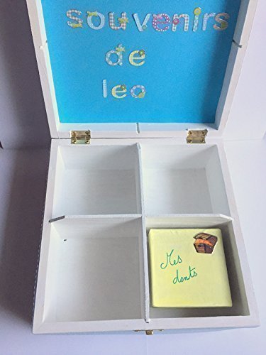 Remember customizable baby wooden box. To keep carefully sheltered from the weather and dust first baby items. Four compartments each containing a painted cardboard box to keep: his birth bracelet, strands of hair, Cap, teeth... Dimension: 16.5 x 16cm x 7cm. Each box is 7 x 7.2 cm Dimensions of mini boxes: 6.6 cm x 6.5 cm x 4 cm Letters, date and foam paper bird Inside of the lid covered with blue foam paper and customized by using stickers multicolor White acrylic paint, the base is covered with blue tulle, fully customizable hand crocheted Blue Ribbon: simply get to know your wishes at the time of the order Very fast shipping
