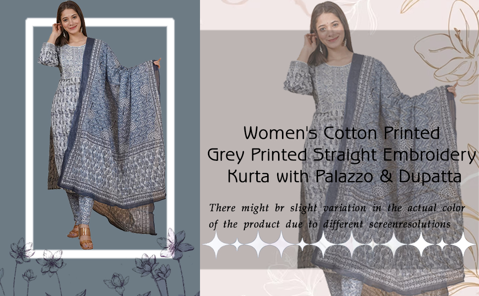 Meera Fab Womens Cotton Printed Printed Straight Embroidery Kurta Palazzo | Desertcart Panama