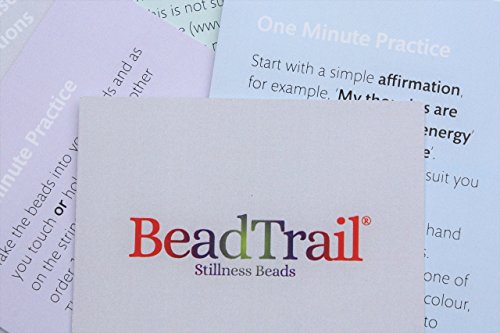 BeadTrail® Beads for Guided Meditation Practice, Mindfulness, Relaxation and Reducing Stress • Beautiful string of unique BeadTrail® beads for a meditation or mindfulness practice • Contains meditation cards with easy step-by-step guides • Presented in a beautiful, handmade drawstring bag • Helps reduce stress • Brings clarity and insightThis beautiful bag contains a handmade string of beads and 1, 2 and 3 minute meditation cards to help reduce stress levels and encourage mindfulness. The bag colour is lilac and the beads are shades of lilac, green and metallic. Each bead string is made giving thought and careful consideration to the look, feel and diversity of each collection. This product has been put together by Penny Gundry, a coach, facilitator and expert in stress reduction and mediation. She has developed these bags as part of her 123 Stillness Practice and BeadTrail® system which helps bring people into the present moment, helping relaxation and clear thinking. Each bag contains: • a collated string of 14 unique beads - each hand picked and different from any other • 5 meditation instruction cards • a handmade drawstring bag.
