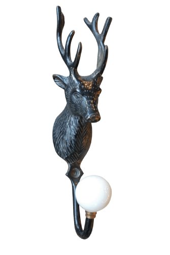 Get a country lodge look with this quirky and contemporary iron deer stag head with a single hook and ceramic knob. Size: 19cm