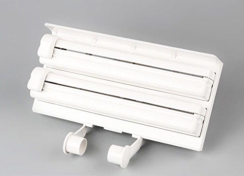 Elegant, safe, and practical accessory for the modern kitchen: a wall-mounted roll holder for aluminium foil, cling film and kitchen towel. Everything is stored neatly in one place Both roll containers are equipped with razor-sharp blades, which cut the foil neatly and precisely. After cutting, the foil/film ends stick out far enough from the roll holders to get an easy grip next time and be able to pull out The cutting blades are safely hidden behind the ergonomically designed cutters. Takes rolls up to 30 cm wide. Size: 40cm x 24cm, 7cm depth Colour: white