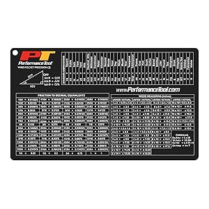 The Performance Tool W485 Pocket Precision Reference Cards Kit is a compact, durable set of three coated plastic cards featuring essential measurement gauges, rulers, drafting tools, and comprehensive conversion and formula charts—designed to deliver quick, reliable reference for professionals and DIY enthusiasts alike.