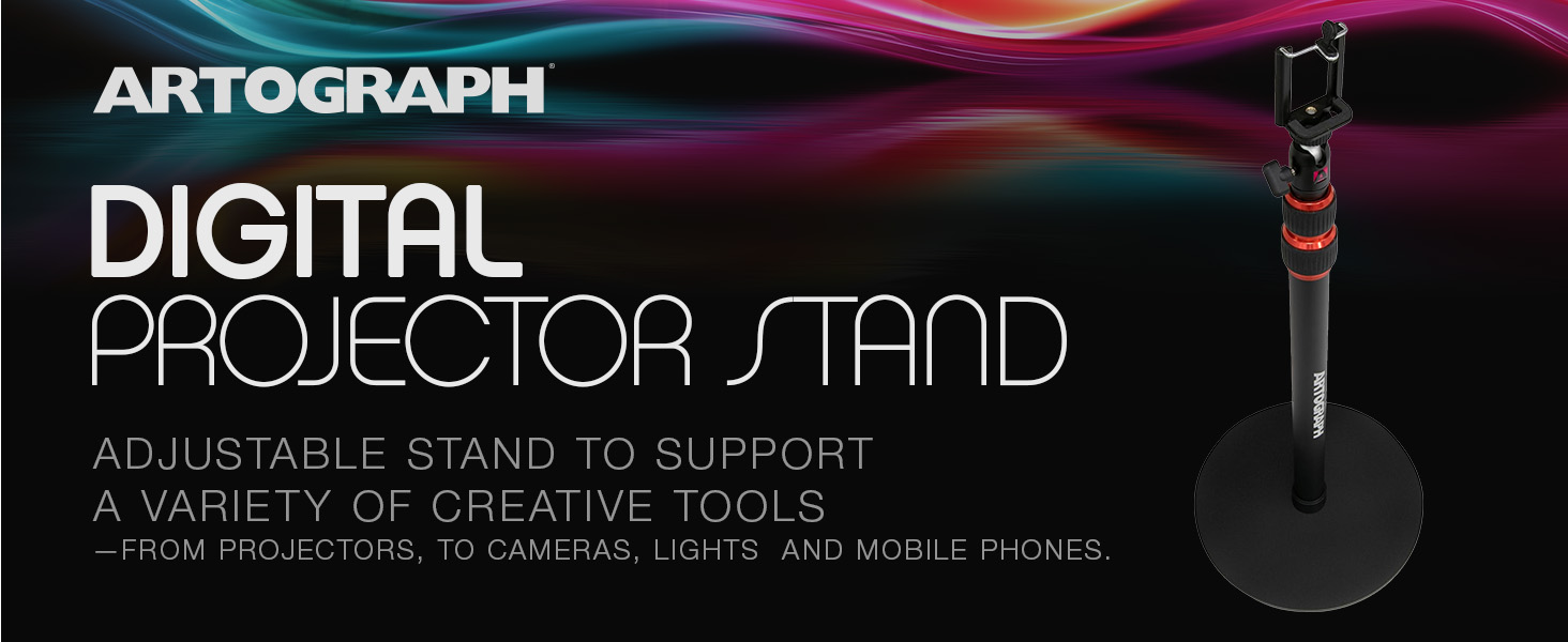 The Artograph Digital Projector Table Stand is a sleek, adjustable-height stand designed for digital projectors, cameras, and lights. Featuring a sturdy metal monopod base with a padded bottom, it supports up to 4 lbs and offers versatile mounting with universal bolts and a 360Β° swivel ball mount. Its height extends from 19" to 49", making it perfect for professional tracing, presentations, or photography setups. Lightweight and easy to assemble, itβs a must-have for creative professionals seeking precision and flexibility.