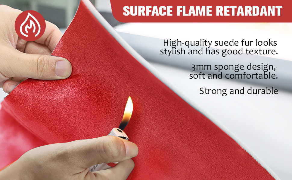 This premium red micro-suede headliner fabric features a soft foam backing and flame retardant properties, designed for easy DIY installation in most full-size cars, SUVs, and trucks. Ideal for automotive and marine interiors, it offers a durable, stylish upgrade that eliminates sagging headliners while ensuring safety and versatility.