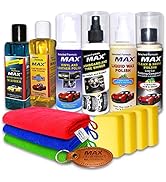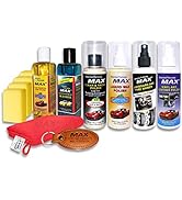 The MAX Complete Car Care Kit STANDARD edition includes five 200ml premium cleaning and polishing liquids, a high-density 350 GSM microfiber cloth, three foam applicators, and a leather keychain. Designed for comprehensive car maintenance, it offers effective washing, paint protection with Carnauba wax, anti-freeze windshield cleaning, and conditioning for vinyl and leather surfaces. This all-in-one kit ensures your vehicle stays spotless, glossy, and showroom-ready with minimal effort.